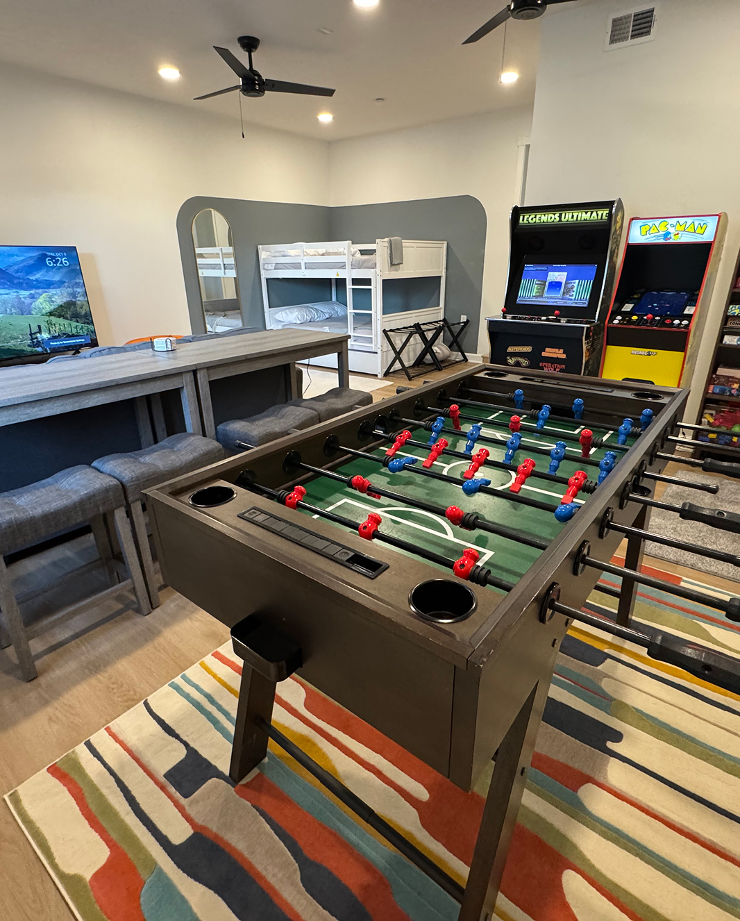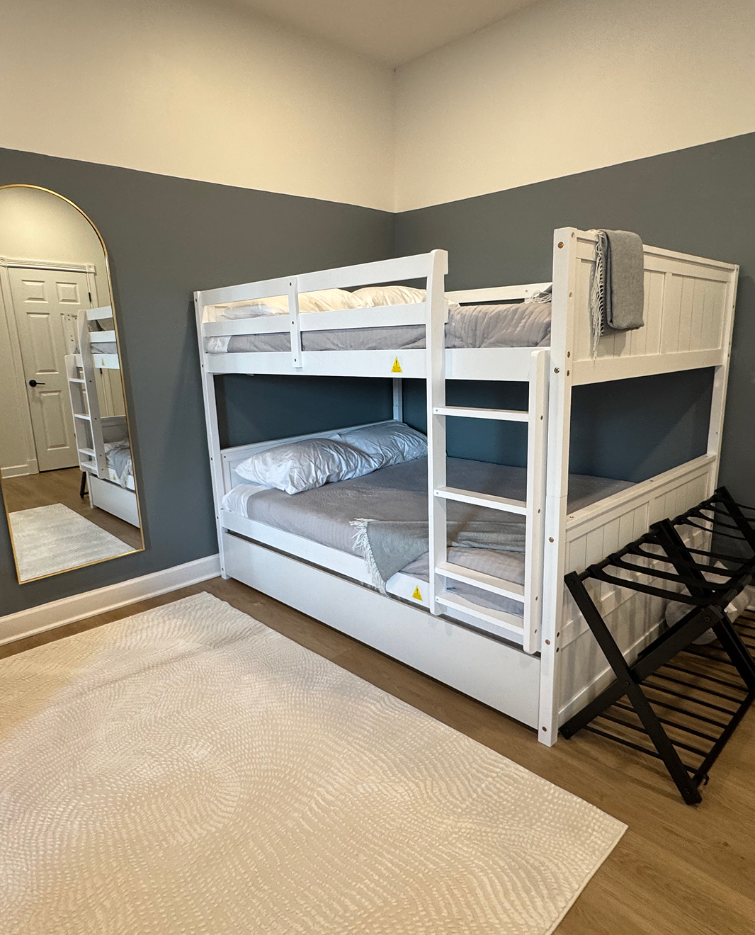Extra sleeping options including a queen sofa bed, bunk bed, and trundle, ideal for larger groups.