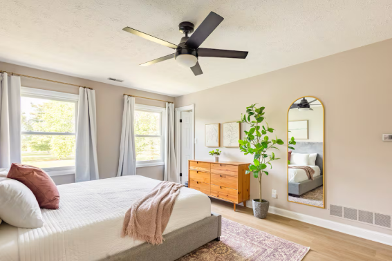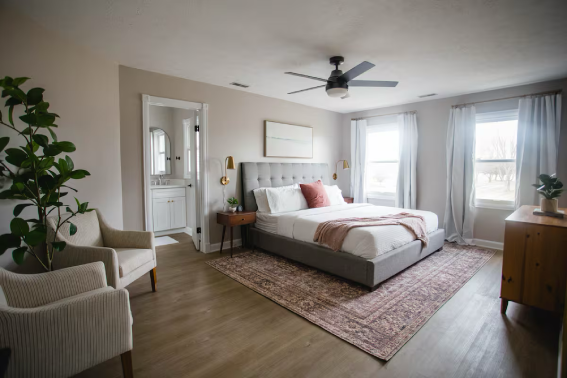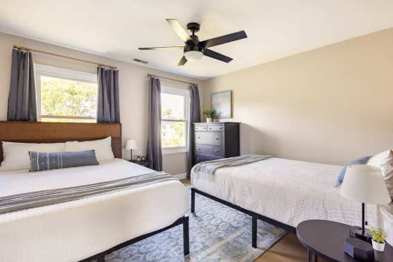 Each bedroom is designed to feel calm, comfortable, and welcoming — with soft linens, memory-foam mattresses, and room-darkening curtains to ensure a great night’s sleep.